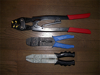 ↑主に使っている圧着工具です。 22スケまで圧着できる大型のものと、いわゆる電工ペンチを使い分けています。