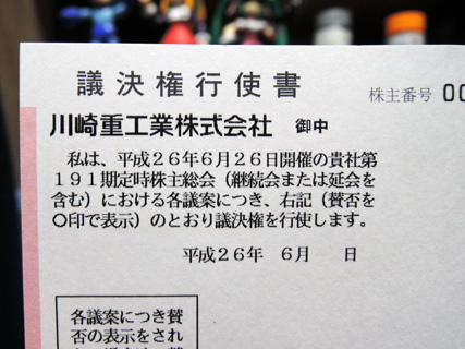 今年も株主総会の時季がやってきました。 弱小株主ではありますが、川重株を資産株として保有して8年目になります。